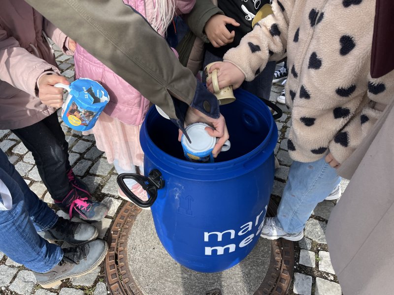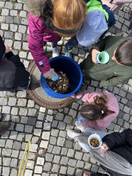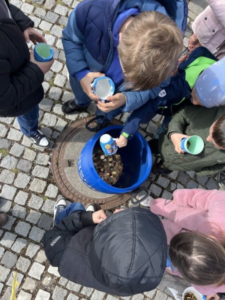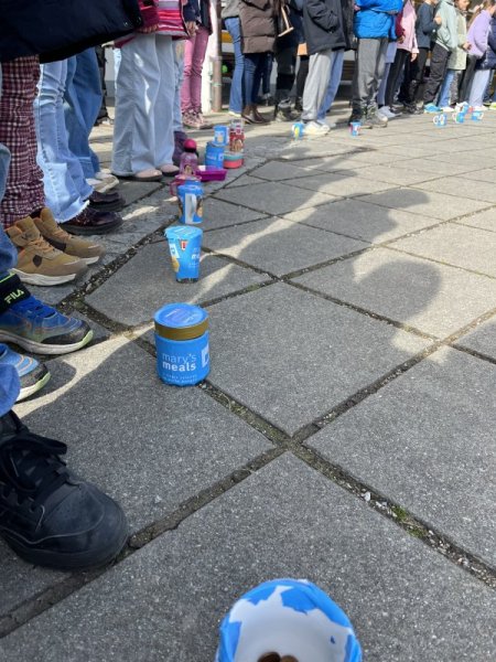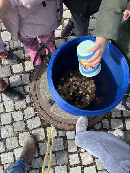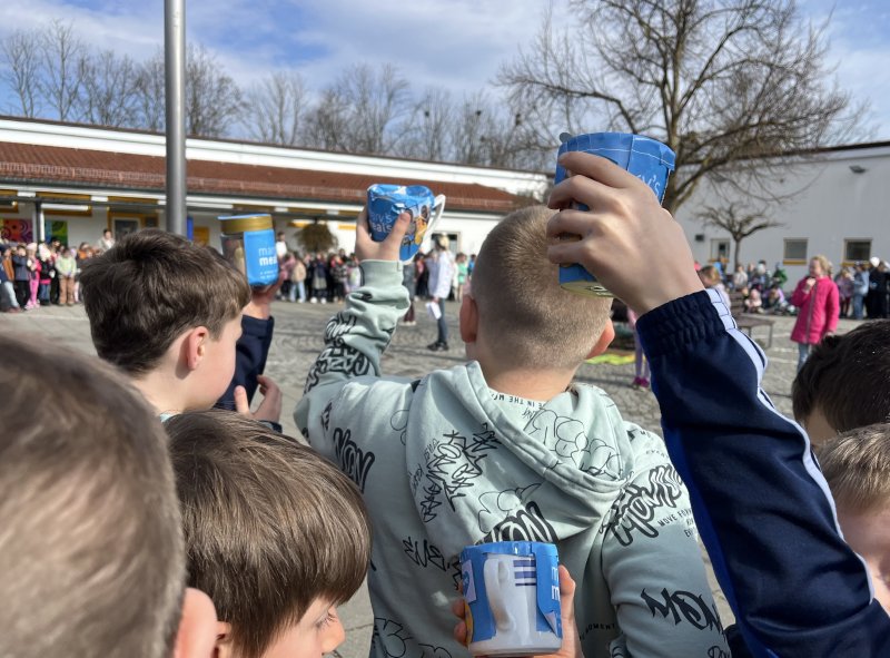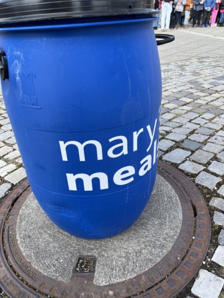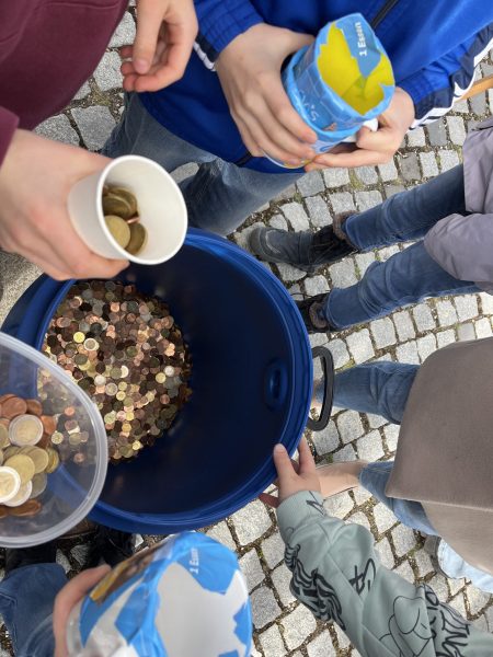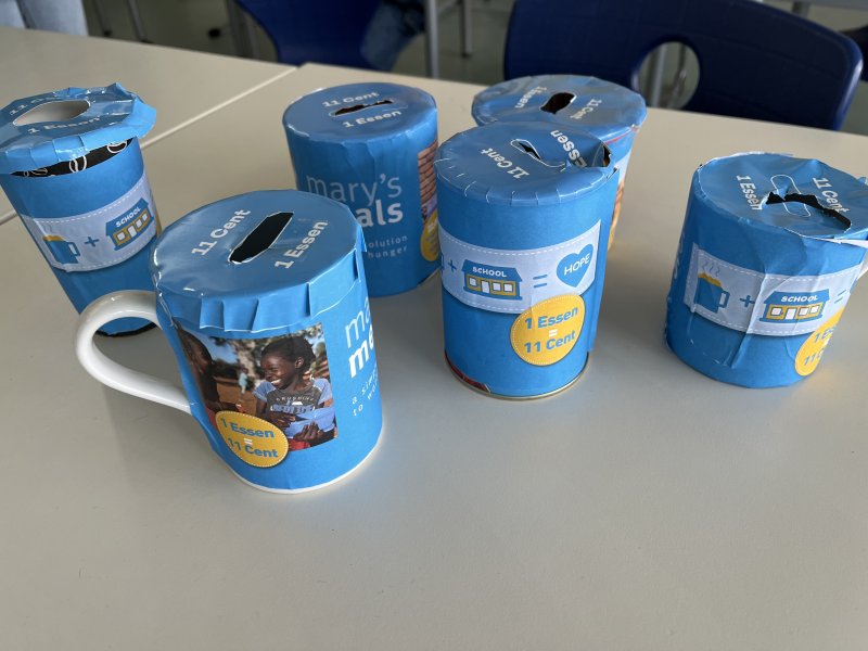In einer gemeinsamen Aktion auf dem Pausenhof der Amberieu-Schule leerten wir Richtung Ende der Fastenzeit unsere Tassen in das große Mary´s Meals–Fass. Nun erwarten wir gespannt, mit wie viel Geld wir heuer den Kindern in Not unter die Arme greifen dürfen.